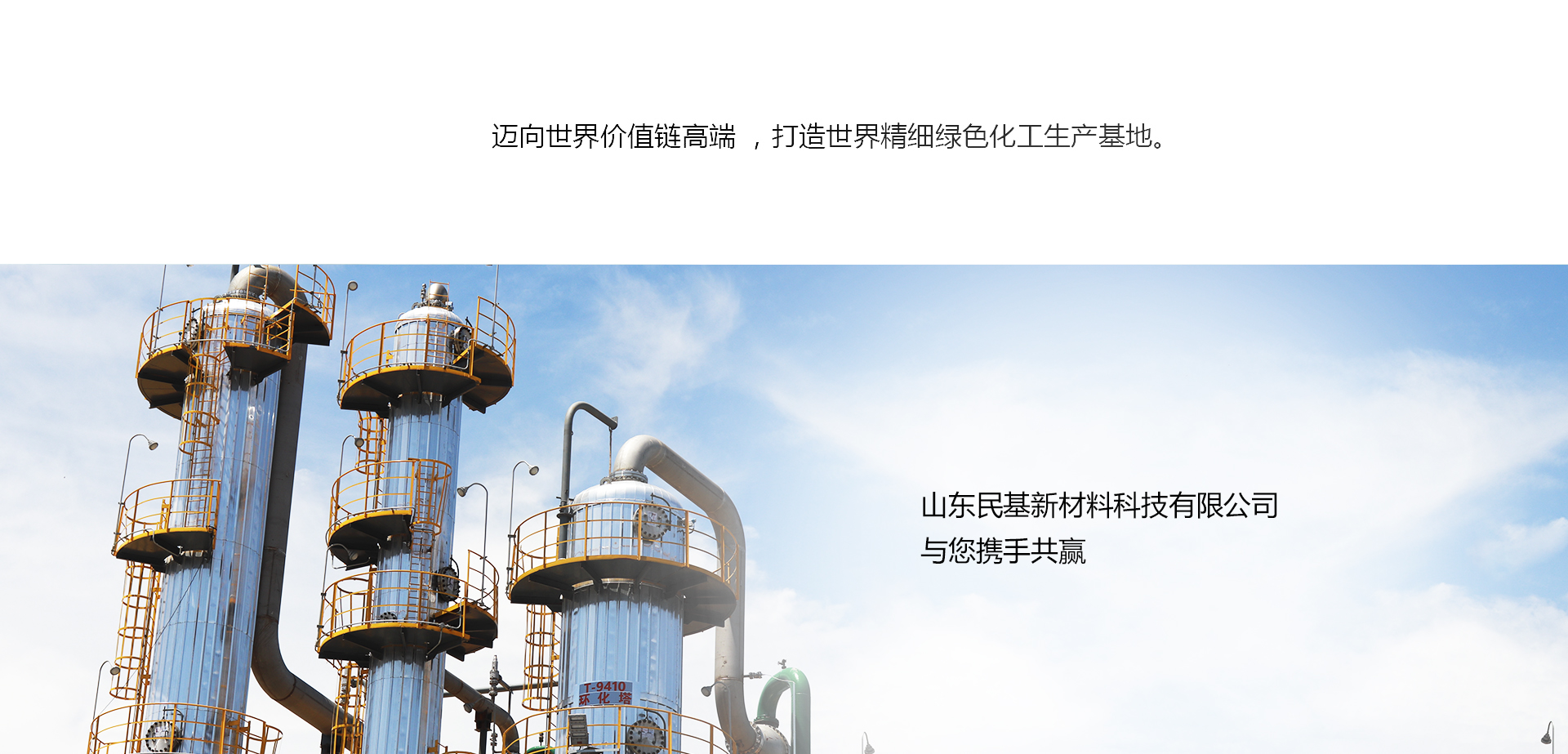 山東民基新材料科技有限公司成立于2008年5月,占地面積20萬平方米,注冊資本1.1億元,是山東省高新技術(shù)企業(yè)、山東省雙體系標桿企業(yè)、山東省氯乙酸行業(yè)安全操作規(guī)程起草單位、山東省瞪羚企業(yè)、山東省“專精特新”中小企業(yè)、山東省“中小企業(yè)隱形冠軍”,獲山東省“富民興魯勞動獎狀”、“振興淄博勞動獎狀”、“淄博市勞動關(guān)系和諧企業(yè)”、“淄博市示范誠信企業(yè)”等榮譽20余項。擁有省級和市級“一企一技術(shù)”研發(fā)中心、淄博市工程研究中心,已申報、擁有專利30余項。 公司主要產(chǎn)品:氯乙酸、環(huán)氧氯丙烷、三甲基乙酸、三甲基乙酰氯、氯代特戊酰氯、濃硫酸、發(fā)煙硫酸、液體二氧化硫等,組成了“氯乙酸—環(huán)氧氯丙烷”、“三甲基乙酸—三甲基乙酰氯—氯代特戊酰氯”兩條綠色循環(huán)產(chǎn)品鏈,其中氯乙酸單套裝置產(chǎn)能全球第一。產(chǎn)品廣泛用于醫(yī)藥、農(nóng)藥、染料、膠粘劑等行業(yè),深受國內(nèi)外市場青睞。公司擁有自營出口權(quán),通過了三體系認證,獲頒歐盟3A信用評估證書、國內(nèi)3A級信用企業(yè)證書。 建基筑業(yè)十余年,公司始終踐行“創(chuàng)新驅(qū)動、高端智能、高質(zhì)高效、綠色循環(huán)”發(fā)展理念,集中資源,定向發(fā)力,堅守主業(yè),聚焦項目,聚力創(chuàng)新,致力于研發(fā)構(gòu)建“投入-產(chǎn)出-資源循環(huán)利用”的安全環(huán)保綠色制造體系,打造了新舊動能轉(zhuǎn)換的“民基樣板”。